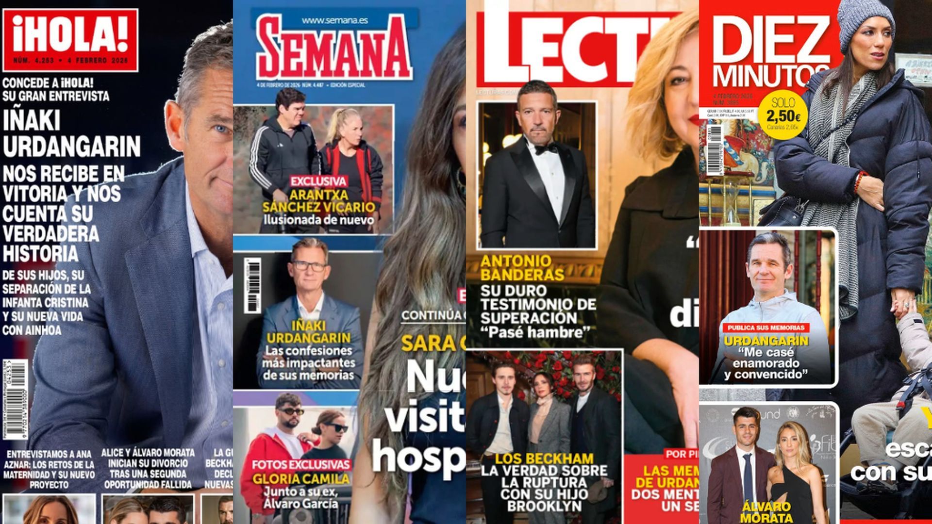 Junto a la pareja, la publicación muestra tres informaciones más. Es el caso de las mencionadas memorias del que fuera yerno de los reyes Juan Carlos I y Sofía, que asegura en ellas haberse casado "enamorado y convencido" con la infanta Cristina. También de la ruptura definitiva entre Campello y Morata tras una década juntos. Por último, un repaso por los mejores looks de la alfombra roja de los Premios Feroz 2026, que reconocieron este fin de semana en Pontevedra a lo mejor del cine y la televisión patrias.