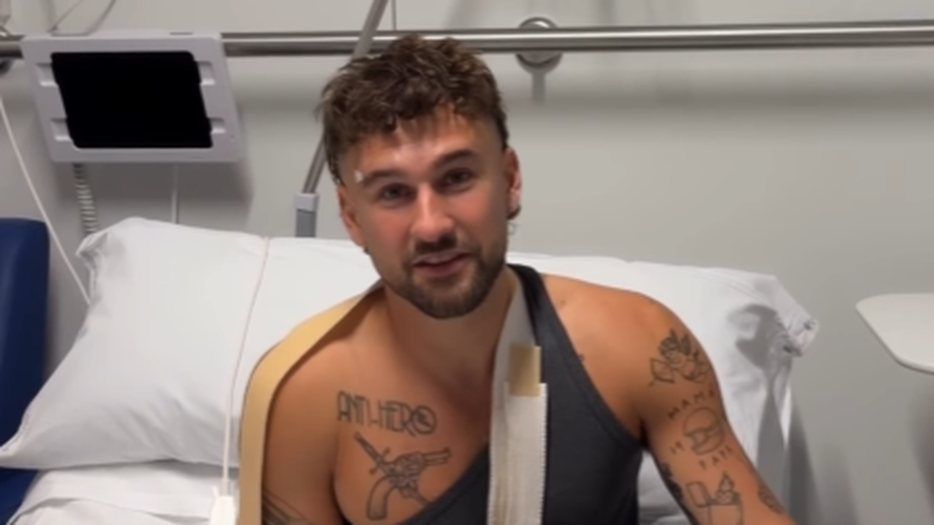 Horas después del incidente, el cantante ha compartido un vídeo en sus redes sociales grabado desde el hospital. En las imágenes aparece con una tirita en la ceja y varios vendajes visibles tras la caída. En ese mensaje explicó la situación: "Me han dado malas noticias. Tengo roturas de ligamentos en el hombro. Mañana me van a tener que operar de urgencia, no sabemos cómo va a ser la recuperación, pero quería grabar el vídeo para deciros que estoy bien y que podría haber sido peor". También añadió: "He hablado con el médico y mi intención es poder estar recuperado lo antes posible".