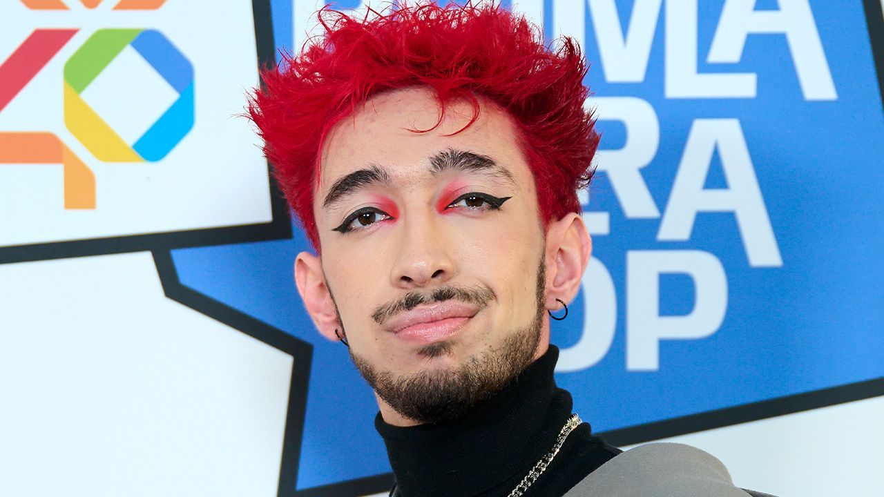 El cantante de rap Walls ha sido uno de los chicos que más se ha salido del color negro durante la gala, con un outfit de pantalón vaquero, camiseta básica de tirantes y chaqueta dorada a juego con las mechas de su pelo.