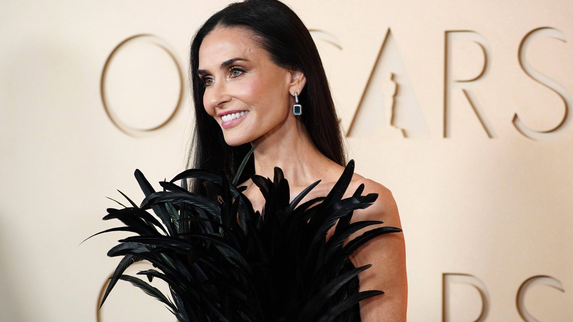 El look de Demi Moore en los Premios Oscar 2026, con un vestido ajustado de plumas y escamas